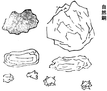 《图经》曰:自然铜,生邕州山岩中出铜处,今信州、火山军皆有之。於铜坑中及石间采之,方圆不定,其色青黄如铜,不从矿炼,故号自然铜。今信州出一种,如乱铜丝状,云在铜矿中,山气熏蒸,自然流出,亦若生银,如老翁须之类,入药最好。火山军出者,颗块如铜,而坚重如石,医家谓之銗石,用之力薄。采无时。今南方医者说,自然铜有两三体:一体大如麻黍,或多方解,累累相缀,至如斗大者,色煌煌明烂如黄金、䃋石,最上;一体成块,大小不定,亦光明而赤;一体如姜、铁矢之类。又云:今市人多以銗石为自然铜,烧之皆成青焰如硫黄者是也。此亦有二三种:一种有壳如余粮,击破其中光明如鉴,色黄类䃋石也;一种青黄而有墙壁,或文如束针;一种碎理如团砂者,皆光明如铜,色多青白而赤少者,烧之皆成烟焰,顷刻都尽。今药家多误以此为自然铜,市中所货往往是此。自然铜用多须锻,此乃畏火,不必形色,只此可辨也。