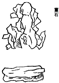 大寒,无毒。主诸热,治眼肿痛,解心脏热结,消去肿毒及疗小儿热疳,雀目,青盲。得大黄、栀子,治眼睑肿。得决明、菊花,疗小儿眼疳生翳膜,甚良。亦治热嗽。近道处处有之,以出饶阳郡者为胜,生田野间地中,穿地深丈余得之。形如土色,圆方、长短、大小不等,内实而外则重重相叠,采无时。用之当细研为粉。不尔使人淋。又有一种如姜石,时人多指以为井泉石者,非是。