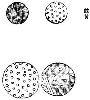 《图经》曰:蛇黄,出岭南,今越州、信州亦有之。《本经》云:是蛇腹中得之,圆重如锡,黄黑青杂色。注云多赤色,有吐出者,野人或得之。今医家用者,大如弹丸,坚如石,外黄内黑色,二月采。云是蛇冬蛰时所含土,到春发蛰,吐之而去。与旧说不同,未知孰是?