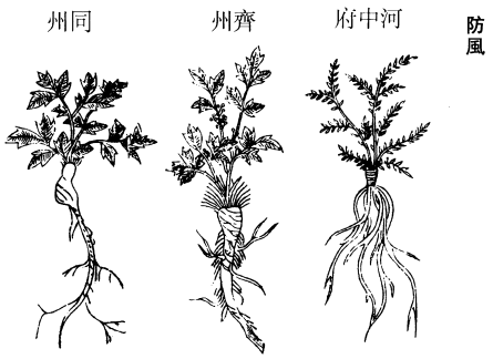 《唐本》注云:今出齐州、龙山最善,淄州、兖州、青州者亦佳。叶似牡蒿、附子苗等。《别录》云:叉头者,令人发狂;叉尾者,发痼疾。陶云无沙苑,误矣。襄阳、义阳、上蔡,元无防风,陶乃妄注尔。