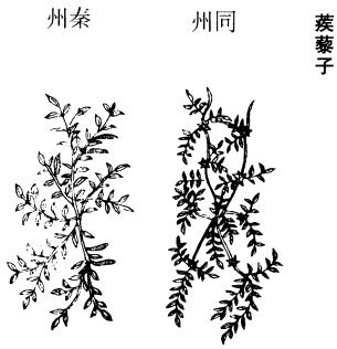 禹锡云:按《蜀本图经》云:叶似角蒿,今曹、兖州下湿地最多。六月、七月采茎,日乾之,黑於众草。