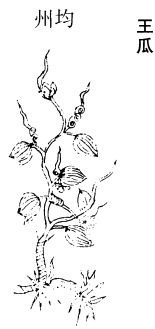《图经》曰:王瓜,生鲁地平泽田野及人家垣墙间,今处处有之。《月令》云:四月王瓜生。即此也。叶似栝楼,圆无叉缺,有刺如毛。五月开黄花。花下结子如弹丸,生青熟赤。根似葛,细而多糁,谓之土瓜根。北间者,其实累累相连,大如枣,皮黄肉白。苗叶都相似,但根状不同耳。三月采根,阴乾。均、房间人呼为老鸦瓜,亦曰菟瓜。谨按《尔雅》曰:蔩(羊善切),菟瓜。郭璞注云:似土瓜。而土瓜目谓之藈(与睽同)茹(与姑同),又名钩茹,盖菟瓜别是一种也。又云:芴(音物),菲,亦谓之土瓜,自别是一物。《诗》所谓采葑采菲者,非此土瓜也。大凡物有异类,同名甚多,不可不辨也。葛氏疗面上痱瘰子用之,仍得光润皮急。以土瓜根捣筛,浆水匀13和,入夜先浆水洗面傅药,旦复洗之。百日光华射人。小儿四岁发黄。生捣绞汁三合与饮,不过三饮已。