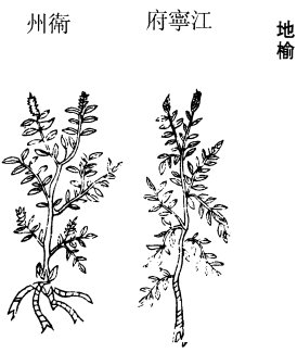 《图经》曰:地榆,生桐柏及冤句山谷,今处处有之。宿根,三月内生苗,初生布地,茎直,高三四尺,对分出叶。叶似榆少狭17,细长作锯齿状,青色。七月开花如椹子,紫黑色。根外黑里红,似柳根。二月、八月采,暴乾。叶不用,山人乏茗时,采此叶作饮亦好。古断下方多用之。葛氏载徐平疗下血二十年者。取地榆、鼠尾草各三两,水二升,煮半,顿服。不断,水渍屋尘,饮一小杯投之。不过重作,乃差。小儿疳痢,亦单煮汁如饴糖与服,便己。又毒蛇螫人,捣新根取汁饮,兼以渍疮,良。