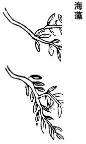 《图经》曰:海藻,生东海池泽,今出登、莱诸州海中。凡水中皆有藻。《周南诗》云:於以采藻,於沼於沚是也。陆机云:藻,水草,生水底。有二种:一种叶如鸡苏,茎如箸,长四五尺;一种茎如钗股,叶如蓬蒿,谓之聚藻,扶风人谓之藻聚,为发声也。二藻皆可食,熟挼其腥气,米面糁蒸为茹,甚佳美。荆、杨人饥荒,以当谷食。今谓海藻者,乃是海中所生,根著水底石上,黑色如乱发,而粗大少许,叶类水藻而大,谓之大叶藻。《本经》云主瘿瘤是也。海人以绳系腰,没水下则得之,旋系绳而之20。又有一种马尾藻,生浅水中,状如短马尾,细黑色。此主水癊,下水用之。