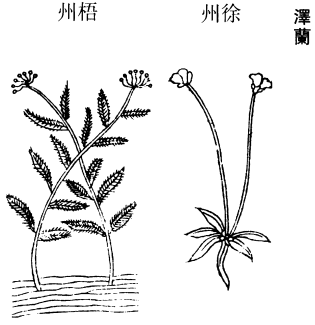 味辛、酸,寒,无毒。主暴热身痒,下水气,胜酒,长须发,主消渴,下气。以沐浴,生毛发。久服轻身。一名水肥12,一名水白,一名水苏。生雷泽池泽。三月采,曝乾。
