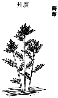 味甘,平,无毒。主恶气疰心腹痛满,下气。令体香,和诸香作汤圆用之,得酒良。生零陵山谷。叶如罗勒。《南越志》名燕草,又名薰草,即香草也。《山海经》云:薰草,麻叶方茎,气如蘼芜,可以止疠,即零陵香也。(今附。)