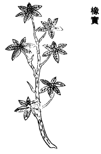《衍义》曰:橡实,栎木子也。叶如栗叶,在处有。但坚而不堪充材,亦木之性也。山中以椿人为粮,然涩肠。木善为炭,他木皆不及。其壳堪染皂。若曾经雨水者,其色淡,不若不经雨水者。檞亦有壳但少,而不及栎木所实者。