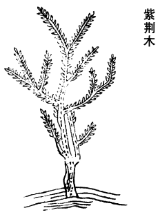 《图经》曰:紫荆,旧不著所生州郡,今处处有之,人多於庭院间种植。木似黄荆,叶小无桠,花艳紫可爱。或云田氏之荆也。至秋子熟,如小珠,名紫珠。江东林泽间尤多。