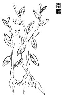 《图经》曰:南藤即丁公藤也。生南山山谷,今出泉州、荣州。生依南木,故名南藤。苗如马鞭有节,紫褐色,叶如杏叶而尖。采无时。此下又有千金藤云:生北地者根如指,色黑似漆。生南土者,黄赤如细辛。又有榼藤子,生广南山林间。木如通草藤,三年方熟,紫黑色。一名象豆。医家稀用,故附於其类。