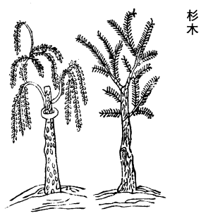 《图经》曰:杉木,旧不载所出州土,今南中深山中多有之。木类松而劲直,叶附枝生,若刺针。《尔雅》云:柀煔。郭璞注云:煔似松,生江南。可以为船及棺材,作柱埋之不腐也。又人家常用作桶板,甚耐水。医师取其节煮汁,浸捋脚气,殊效。