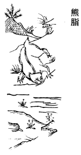 《图经》曰:熊脂并胆,出雍州山谷,今雍、洛、河东及怀、卫山中皆有之。熊形类犬豕,而性轻健,好攀缘,上高木,见人则颠倒自投地而下。冬多入穴而藏蛰,始春而出。脂谓之熊白,十一月取之,须其背上者。寒月则有,夏月则无。其腹中肪及他处脂,煎炼亦可作药而不中啖。胆,阴乾用。然亦多伪,欲试之,取粟颗许,滴水中,一道若线不散者为真。其足蹯,为食珍之贵,古人最重之,然臑之难熟,多食之令人耐寒。脑髓作油摩头,可去白屑。有痼疾者不可食熊,令人终身不愈。熊恶盐,食之则死。