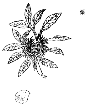 《图经》曰:栗,旧不著所出州土,但云生山阴,今处处有之,而兖州、宣州者最胜。木极类栎,花青黄色,似胡桃花。实有房,汇若拳,中子三五,小者若桃杏,中子惟一二,将熟则罅拆子出。凡栗之种类亦多,《诗》云:树之莘栗。陆机疏云:栗,五方皆有之,周、秦、冀17、扬宣18饶,吴越彼19城表里皆栗,惟濮阳及范阳栗,甜美味长,他方者悉不及也。果中,栗最有益。治腰脚宜生食之,仍略曝乾,去其木气。惟患风水气不宜食,以其味咸故也。壳煮汁饮,止反胃及消渴。木皮主疮毒,医家多用。(莘音榛。)