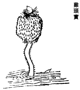 陶隐居云:此即今蔿子形上花似鸡冠,故名鸡头。仙方取此并莲实合饵,能令小儿不长,正尔。食之亦当益人。(蔿音苇。)