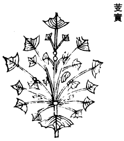 禹锡云:按《蜀本图经》云:此生水中。叶名荷,圆径尺余。《尔雅》云:荷,芙蕖。其茎茄,其叶蕸,其本蔤,其华菡萏,其实莲,其根藕,其中的,的中薏是也。《尔雅》释曰:芙蕖,其总名也,别名芙蓉,江东呼荷。菡萏,莲叶也。的,莲实也。薏,中心也。郭云:蔤,下5白蒻在泥中者。今江东人呼荷叶6为芙蓉,北方人便以藕为荷,亦以莲为荷。蜀人以藕为茄,或用其母为华名,或用根子为母叶号。此7皆名相错,习俗传误,失其正体也。陆机疏云:莲,青皮里白,子为的,的中有青为薏,味甚苦,故俚语云苦如薏,是也。