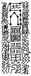 九炁萌阳,玉历龙章。八卦外布,一德中藏。化生自我,绝死回祥。(清醮云:青帝侍魂,九阳升光。洞映内照,化通自然。亡醮云:九阳升元,内外洞明。二七四五,化通自然。)