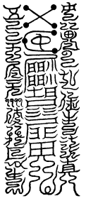 玄帝高真,元始五老。制符垂教,使我行道。今日是时,传符受道,建斋行道。召灵束魔,灾殃荡扫。五方大神,敬伏三宝。从吾吉终,得获难老。脱死上生,华而不皓。违吾者凶,生逢难老。死归冥路,地狱所考。