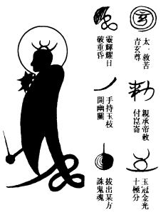 师曰:此符,黄素朱书,引日光月芒书之。焚于未灯之前,以请慧光,然后破狱。