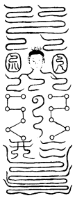 用白绢,按亡人年甲尺寸朱书。此符用鬼门,地上竹竿揭之,然后摄召。