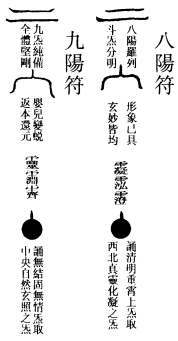 混炁赤丹,天光洞阳。乌轮前走,金鸡奔张。仙炉玉户,洞降真光。流火炎炽,阴尸返刚。太上符命,真阳玉章。请降火炁,与日同光。假符委炁,变炼南昌。一如告命。