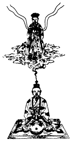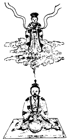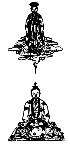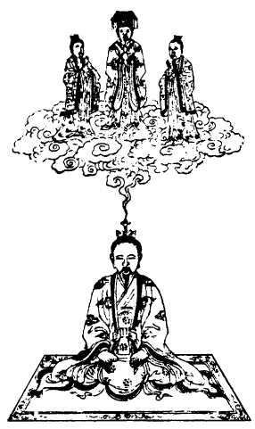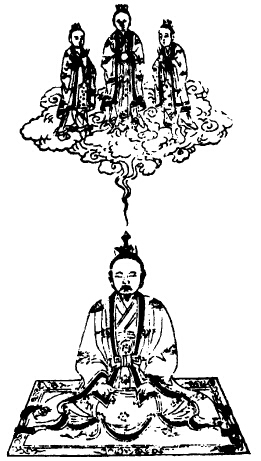 次思三华之炁从兆泥丸中入,兆乃口吸神云,咽津三过,结作三神,白炁君白衮冕,二神侍立,下布结喉之本户,顺时吐息。