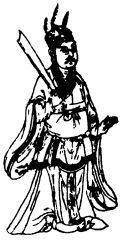 乾第一鬼神,名兴文。能兴人辟兵。所出入处,人常尊敬之,能报怨雠事,往来为人除害,能却阴邪之事。其神圆冠,有三道𧙂,以麦索着古衣革带,右手持刀,左手垂下。