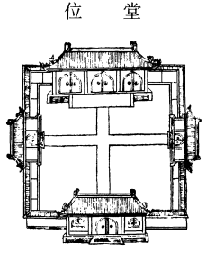 坛堂相近,以便法事。阔狭丰俭,随处取足。宾主房室,勿逼堂墠,食屋沐室,与圊相远。内外区分,慎无敞露。若住止迫迮,严加障理,新浄帷幔,苇荐籧篨。断隔牢密,勿使烟臭相参也。斋堂中正面设太上位,左右经宝、师尊及讲诵之所,屏帏案几,香灯炉奁,四周舒陈,皆令整洁也。