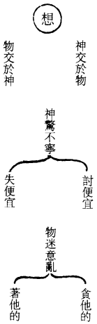 此言神想於物则心地自不安神,故有惊见一物而著爱於物,被物牵引放纵,不知其乡,是以著万物而不知其厌足也,舍身履险亦不知危也。