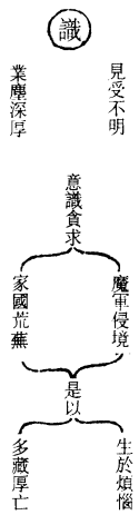此谓贪求乃入邪道之源矣。今日贪求,明日贪求,见之者即贪,闻之者即求。每日种种所得,而心终不知止,却不知已造下烦恼根业,家虽丰足而生贼盗,百计千谋,心放不下。古人所谓财多累身,所以被他缚住,添个烦恼,而祸起陨身,因自取之也。