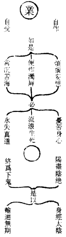 此一节总结上云,众生为有妄心,不得真道之故,舍死贪生,作下烦恼种子。众生之为心,唯求利以厚其生,只图目前家道丰富,沉滞色声香味之场,迷惑有无爱欲之趣,是自取於烦恼妄想,忧苦身心。平日所为,不忠不孝,欺天瞒人之罪,鬼神暗录其尤。一旦天灾罪己,祸害刑身,或阳报其恶,或阴罚其愆,是以遭於浊辱,流浪生死,一灵不知,所自化生,异类之中,百千万劫,难获人身,常沉苦海,永失真道也。世人若能回头鉴此为戒,早参至道之宗,免堕轮回之苦,圣人岂欺我哉?