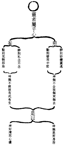 能遣之者,内观於心,心无其心;外观於形,形无其形;远观於物,物无其物。三者既悟,唯见於空。虚灵不昧。