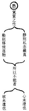 人生天地之间,风土不同,则命禀各有殊异。性非不灵也,盖因受气之浊性,天常如黑云之蔽,所以眼见耳听、鼻闻、舌味,对境触物随穷所漏,放其心而不知返也。元神昏散,故不能复其本真,而自堕冥劫者,为心不能澄也,欲不能遣也。