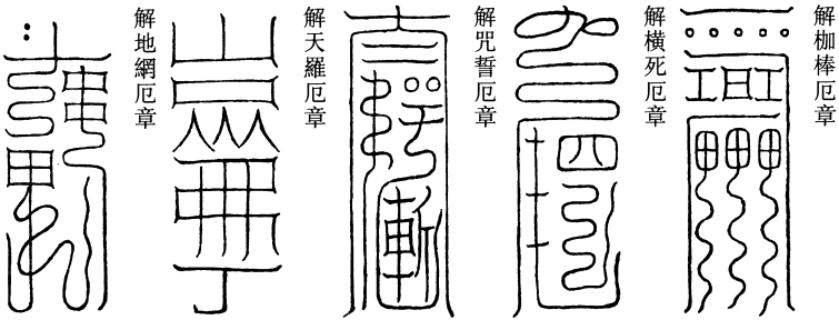 右符作用:先叩齿凝神,存东方天门开,如日初出之状,鼻引口吸,吹在纸上。书毕,口诵密咒云:九灵九灵,合吾真形,水火得位,内外洞明,急如天律元亨利贞。