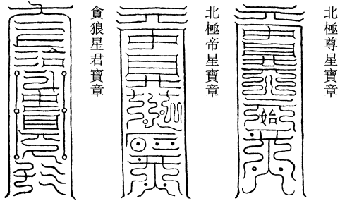 右符,存想尊帝二星,北斗七星,金光朗耀,吸来吹纸上,窍内书玄元始三字,涂九转火笔出向上。