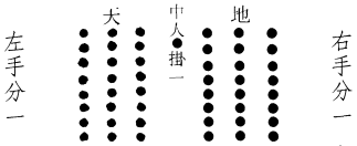 《传》曰:揲之以四以象四时,归奇於扐以象闰;五岁再闰,故再扐而后挂。此图四揲之余,左余一则右余三,左余三则右余一,则两仪归奇之阳数也。左余二则右取余六,左余四左则右亦余四,两仪归奇之阴数也。