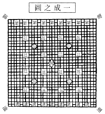 《传》曰:河出图,洛出书,圣人则之。则者,法其象与数也。数始於一,小衍之而成五,大衍之而成十。五、十者,数之结括。而图书者,倚数之大原,卦画之准则也。此象纵横十有五数,正则河图中宫天五乘地十之象。