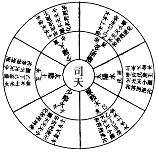 天地遘醇,物我被化,则寒暑燥湿风共主乎一岁之内,生长化收藏咸备乎万物之中。非秪一岁也,虽一时一刻之短,而五行之气莫不存。非特一物也,虽一毫一芒之细,而五行之化莫不载。然司其运,步其气,或太或少,乃轮主岁时而更盛更衰也。上达於天,则有五星倍减之应;下推於地,则有五虫耗育之验。其五谷、五果、五味、五色之化类,岂有一岁而无者,惟成熟有多少,色味有厚薄耳。盖金木水火土并行,其化互有休囚王相不同之目而己。直其运者,独以为之主。当其时者,专以为之客。共行天令,遇阳年则气王而太过,遇阴年则气衰而不及。太过己胜则欲齐其所胜之化,不及己弱则胜者来兼其化。太过岁谓木齐金化,金齐火化,火齐水化,水齐土化,土齐木化也。不及岁谓木兼金同化,金兼火同化,火兼水同化,水兼土同化,土兼木同化也。其司天与运相临,间有逆顺,相刑相佐。司天则同其正,抑运则反其平。如是五气平正,则无相陵犯也。太过之岁,五运各主六年,乃五六三十阳年也。大角谓六壬年,逢子午寅申二火司天,则木运为逆者,火木之子也,居其上为逆。大徵谓六戊年,内逢寒水司天,正抑其火,复为平气之岁,上羽与正徵同也。大宫谓六甲年也,大商谓六庚年也,内逢子午寅申二火司天,正抑其金,复为平气之岁。上徵与正商同也。逢辰戌水司天为逆者,水金之子也,居上为逆。大羽谓六丙年也,不及岁五运各主六年,乃五六三十阴年也。少角谓六丁年也,逢巳亥木司天,与运气得助。上角同正角也。逢卯酉金司天,与运兼化,上商同正商也。逢丑未土司天,以木不及金兼化,则土得其政,上宫同正宫也。少徵谓六癸年也,内逢卯酉金司天,以火不及水兼化,则金得其政,上商同正商也。少宫谓六己年也,内逢丑未土司天,与运合得其助,上宫同正宫也。逢巳亥木司天,与运兼化,上角同正角也。少商谓六乙年也,内逢卯酉金司天,与运气合得其助,上商同正商也。逢巳亥木司天,以金不及火兼化,则木得其政,上角同正角也。少羽谓六辛年也,逢丑未土司天,与运兼化,上宫同正宫也。内言上者,乃司天之令,其五大、五少岁所纪不同者,盖过不遇也。如君火、相火、寒水常为阳年司天,湿土、燥金、风木常为阴年司天。然六十年中,各有上下临遇,或司天胜运,或运胜司天,或运当大过,不务其德,而淫胜其所不胜,或运当不及而避其所胜,而不兼其化。及太一天符、岁会、同天符、同岁会,更按文推,此不再书也。