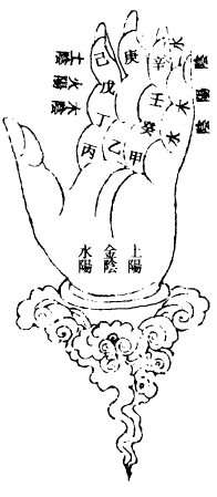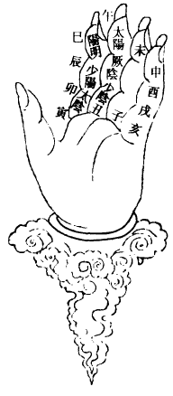 1.十二支司天诀:此图元刻本仅食指、中指有字,余处无字。