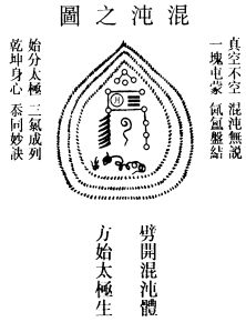 混沌屯蒙如卵,昏昏默默盈空。浩然太素抱鸿濛,一气循环凝重。内隐真水真火,氤氲盘结如冰。中心元始造玄功,三气齐分太定。