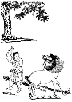 (这马情性乱,嘶喊走东西。牧童随后赶,难保马心贼。)