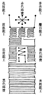 道言:吾所说五龙九圣,安镇五方九宫分野。所以者何?龙王上统九天,下安九地,等仙官之灵威。升天入地,传言负彩。出幽入微,年寿万岁,精通至道。若世间有通灵彻圣之者,修真悟道之人,及国王大臣,及行军战阵,悉用神龙扶助,而得胜也。体生於无,皆禀灵也。天地万物,皆因道法,起教证焉。