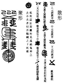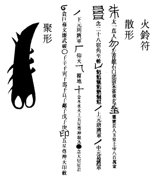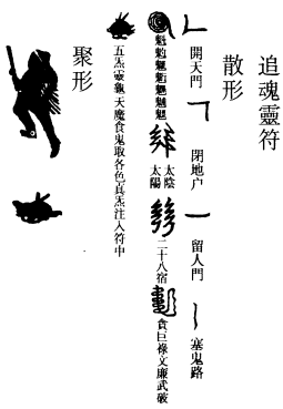 一治癫邪鬼祟,先取本人诣实文状,据其事理,合用申行去处。先札付本家司命五道土地,次牒所属州县城隍,或奏本部兵将收捉,或用奏上天,建立天狱,收捉鬼祟。凡申发文字及差兵将,先用赏设讫,方给帖牒关引等付之案,令奉行,次给符水与病人吞佩。蒙恩之后,再用赏兵,及修设斋醮谢天,以答灵贶。其斋醮法信,量贫富丰俭为之。如委实家贫,不能办者,师为代备之。若富者蒙恩之后,鄙吝财物,不修报谢,有昧兵将之功,即反招殃咎,难以禳解。