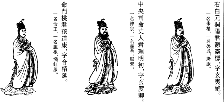 礼读再过,都毕,当和心下气,勿令音辍而蹇也。又闭目存呼太极紫房天皇大帝君逢凌梵,字履昌灵,一名七灵,一名神丈人。如此祝之,三又存三九结解真君,东方青帝雕梁际等,下诣玄母叔火王等二十七人,同著朱衣黄巾。黄巾者,似远游冠之状也。貌如婴儿,有无长短。若兆不能谙识一二存念者,可入室按文施行之。