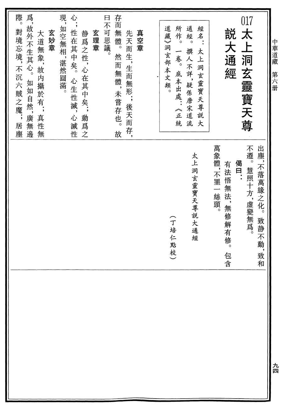 > 太上洞玄灵宝天尊说大通经 原书图片版