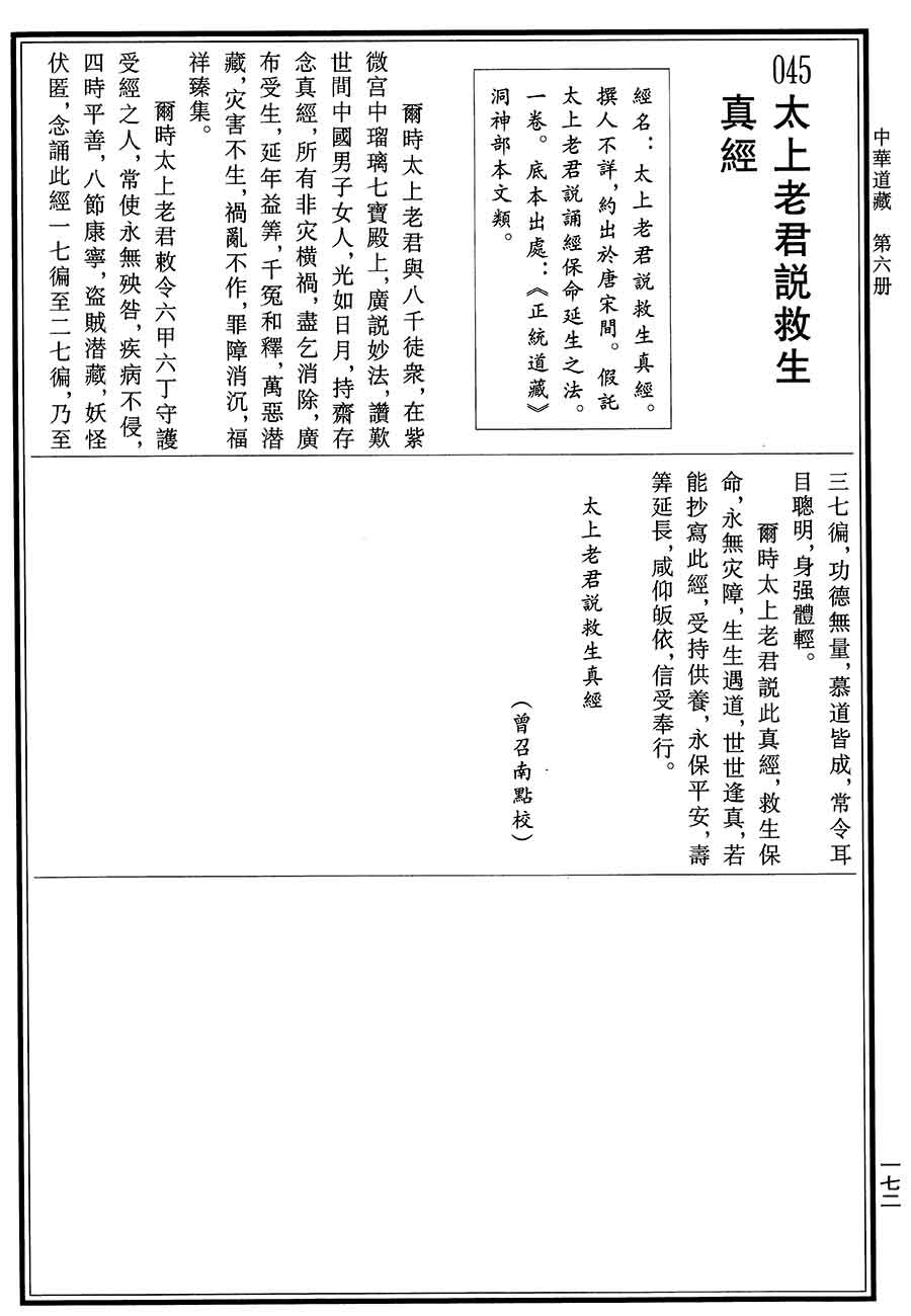 当前位置: 中华道藏 > 太上老君说救生真经 原书图片版