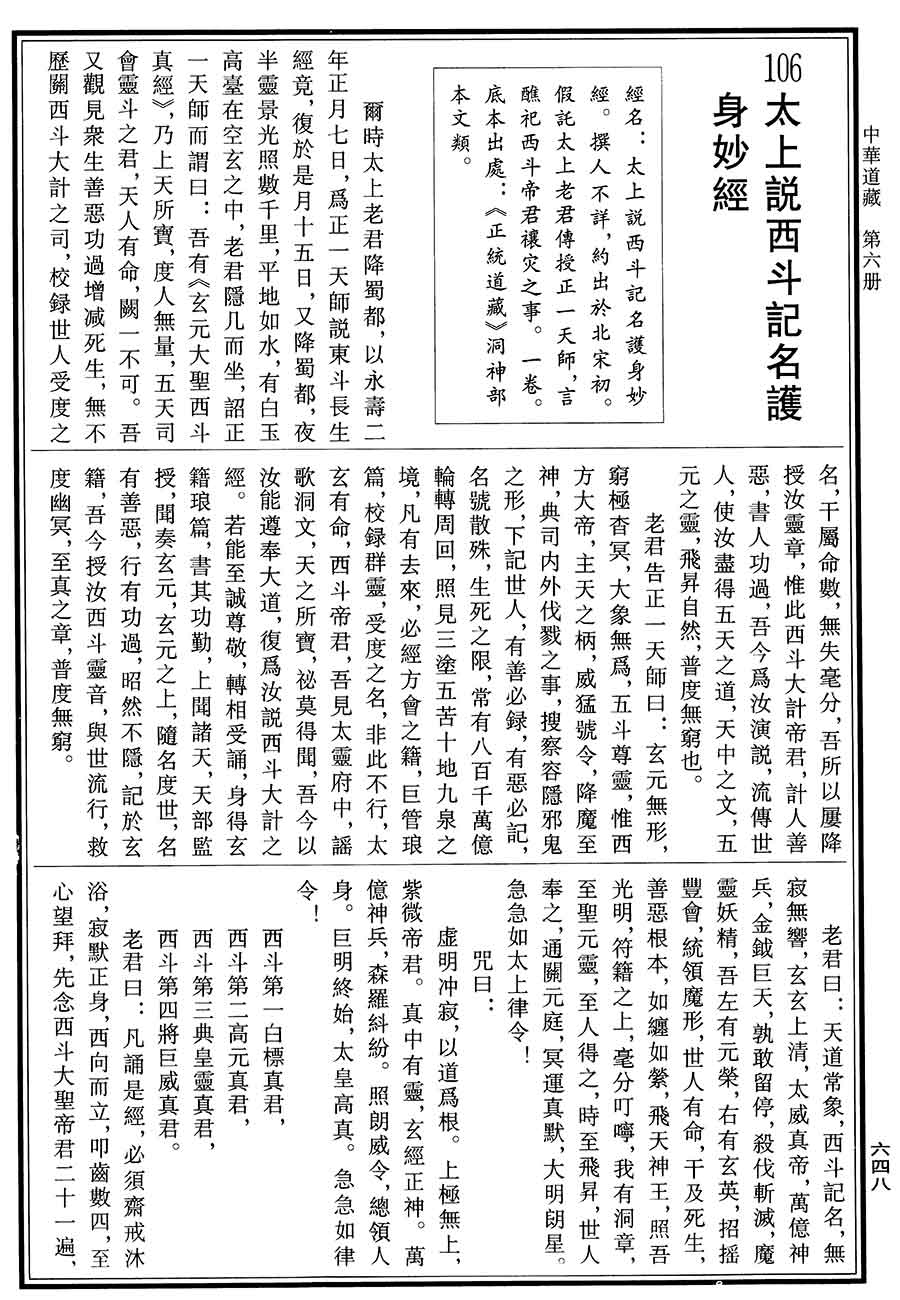 当前位置: 中华道藏 > 太上说西斗记名护身妙经 原书图片版