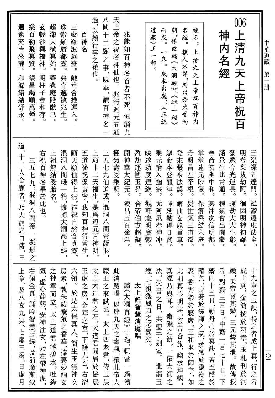 当前位置: 中华道藏 > 上清九天上帝祝百神内名经 原书图片版