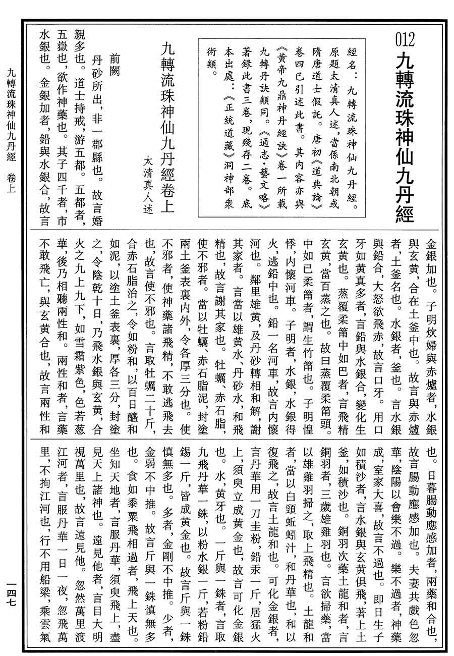 当前位置: 中华道藏 > 九转流珠神仙九丹经 原书图片版