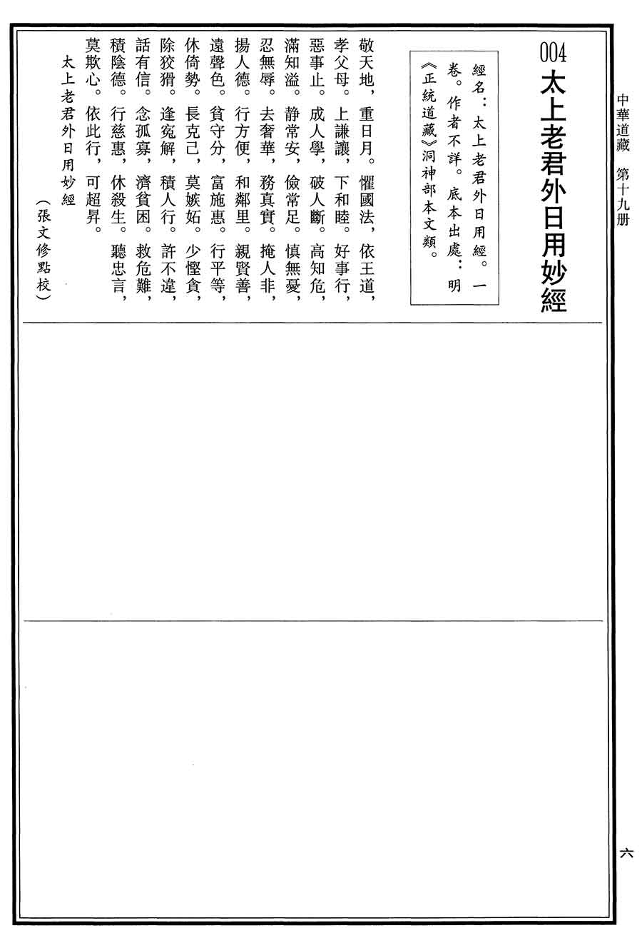 当前位置: 中华道藏 > 太上老君外日用妙经 原书图片版